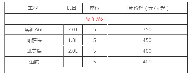 以上是小編提供成都租車自駕怎么收費的具體車子類型和價格,價格僅供參考在旺季時間會隨車輛不同租賃時節不同有相應的調整。
